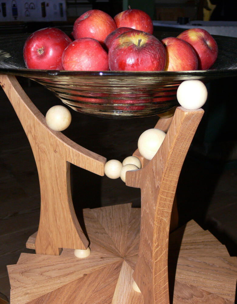 Verspielter Schalenhalter als Beistelltisch in Massivholz Eiche.